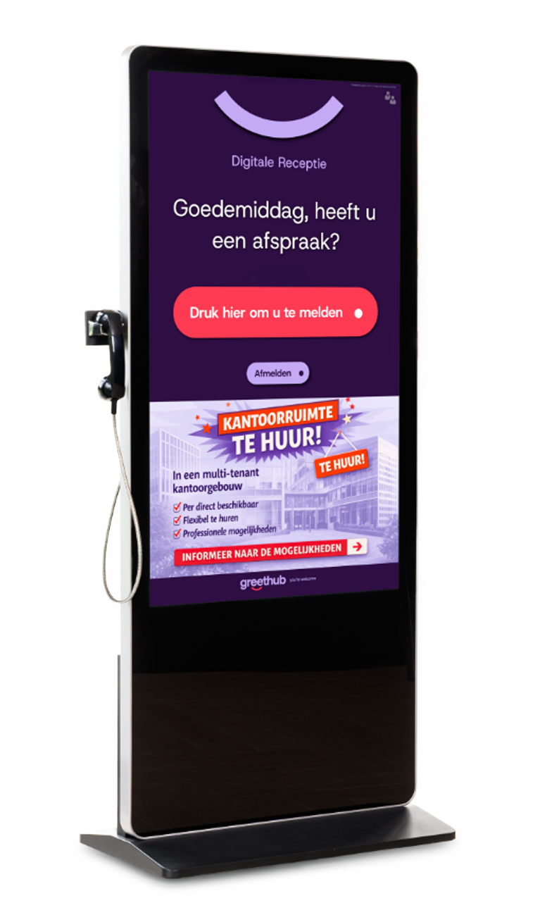 Maak kennis met de GreetHub digitale receptiezuil. De gebruiksvriendelijke virtuele receptionist die jouw bezoekers een warm welkom biedt op locatie.